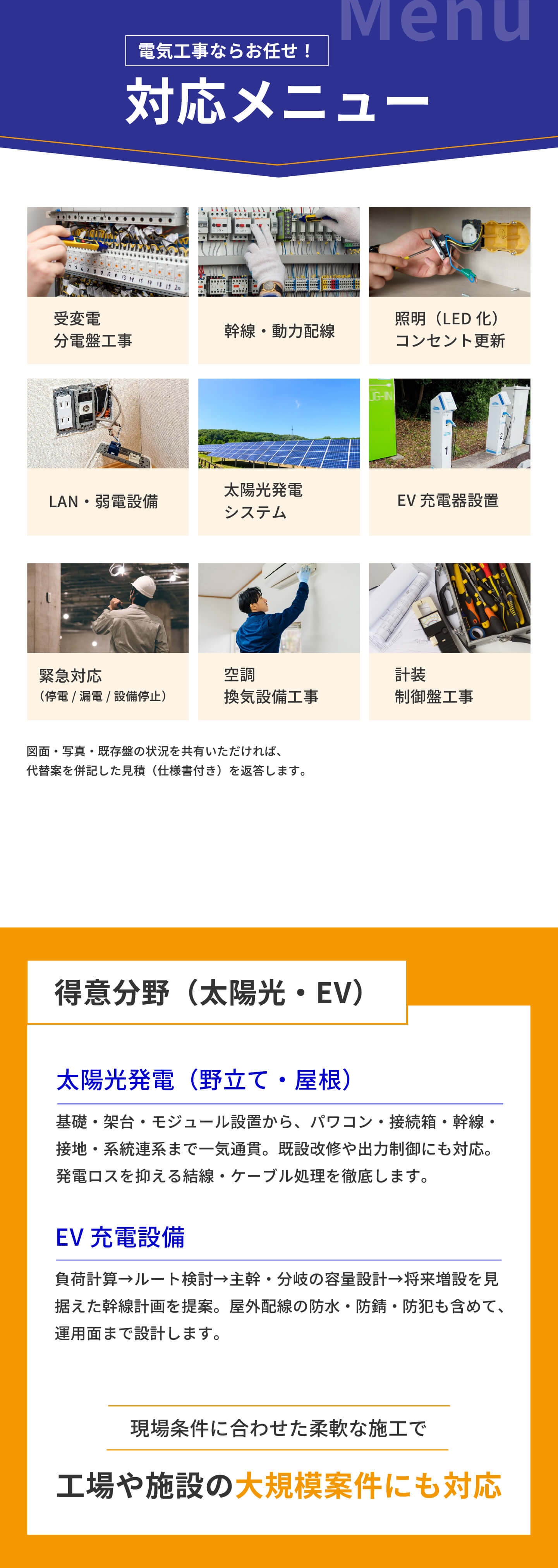 | 事業内容 | アタッチメント製作/修理・産業用太陽光発電システム・電気設備工事 |